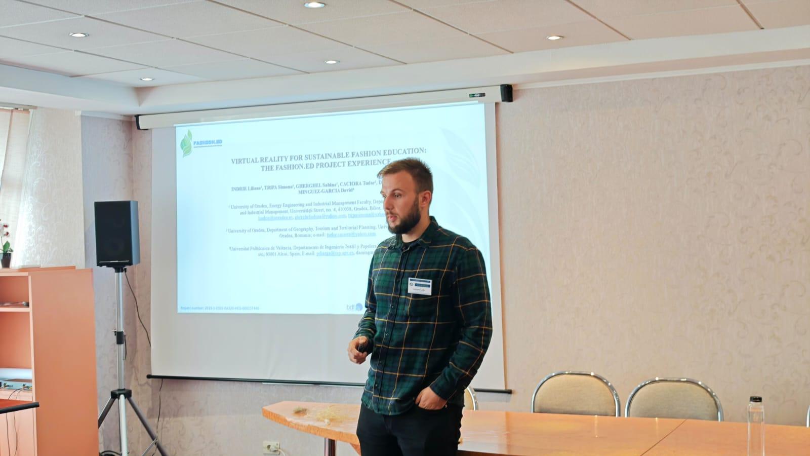 📢 Conferința a inclus și o sesiune de diseminare a proiectului Erasmus+ FashionED – Sprijin pentru antreprenoriat în eco-design. Participanții au aflat informații despre cursul e-learning în limba engleză și au explorat laboratoarele de Realitate Virtuală (VR) dezvoltate în cadrul proiectului pentru promovarea inovației și sustenabilității în educația din domeniul modei.
